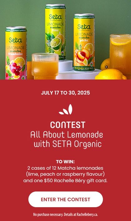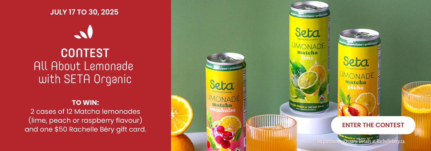2 cases of 12 Matcha lemonades (lime, peach or raspberry flavour) and one $50 Rachelle Béry gift card.